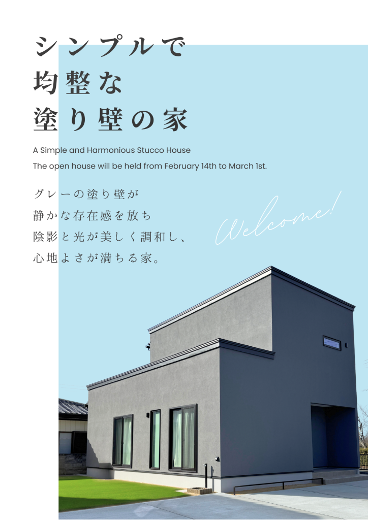 【終了しました】2/21(土)~3/1(日)『シンプルで均整な塗り壁の家』完成見学会開催!
