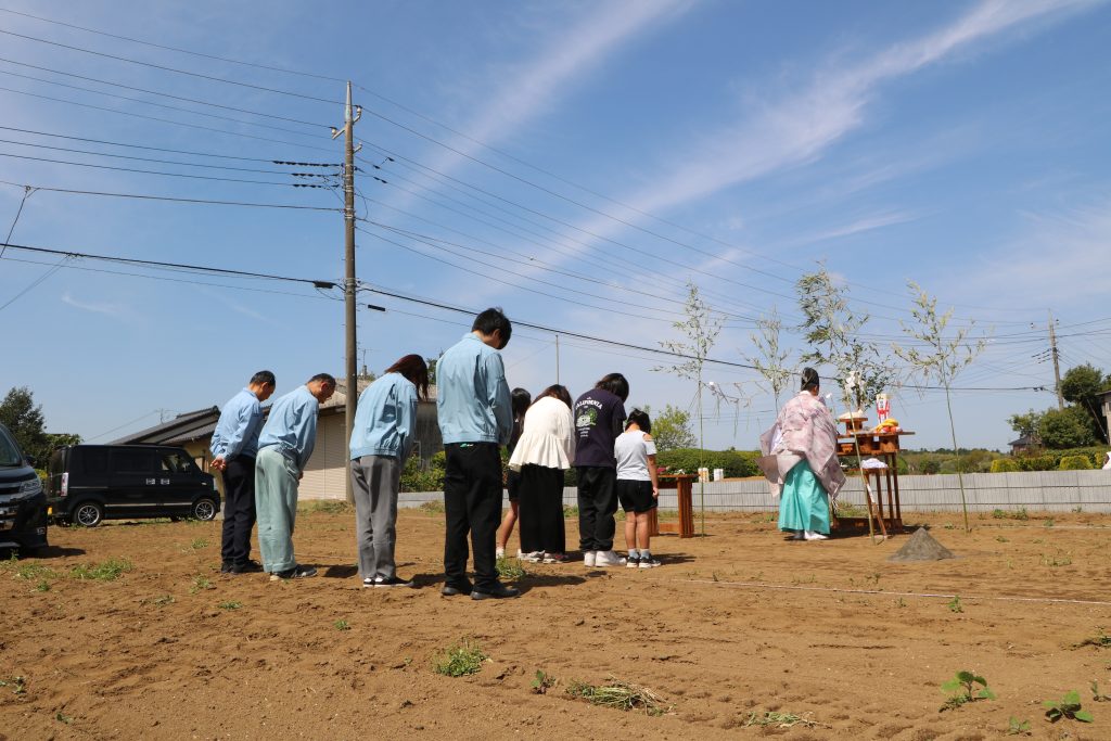 地鎮祭とは、工事の着工に先立ち、土地の神様へご挨拶を行い、工事の安全とご家族の繁栄を祈願する儀式です。